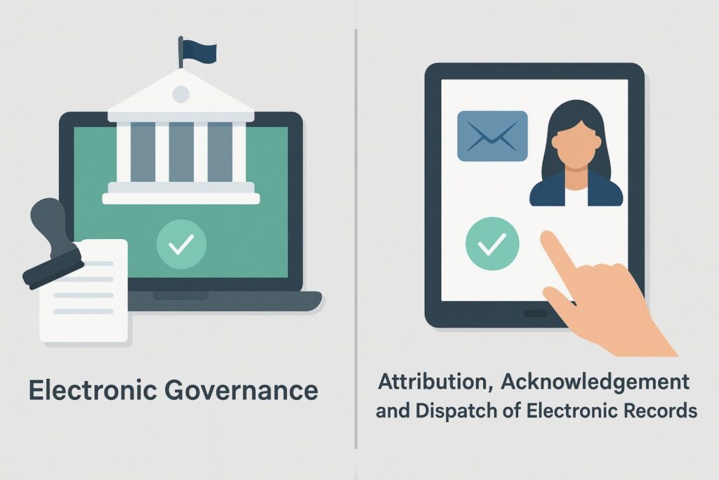 The IT Act also lays down important rules governing how electronic records are identified, communicated, and legally recognized in the course of transactions. These rules bring clarity to issues that arise when documents no longer exist in physical form but are transmitted electronically.